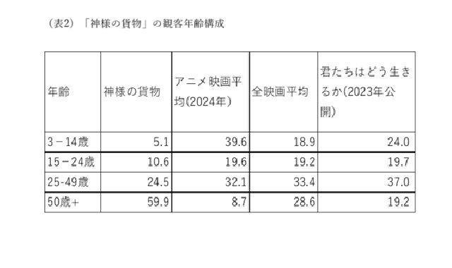 米国アニメが主流の中で、2024年はフランスも出資するラトビア発の「Flow」(2025年アカデミー長編アニメ賞)と「神様の貨物」がそれぞれ観客動員数50万人以上と中規模のヒットを記録した。中でも、実写映画「アーティスト」でアカデミー賞監督賞を受賞したミシェル・アザナヴィシウスが監督した「神様の貨物」は観客の6割が50歳以上となっていることが注目される。
